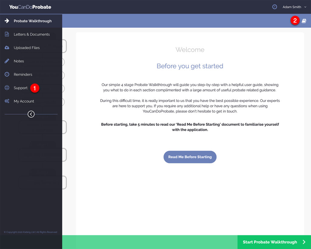 Take the time to read through the first sections of the Probate Walkthrough User Guide before starting. This will give you an idea of how the application works and familiarise yourself with the useful facilities. The Probate Walkthrough User Guide has step-by-step instructions for each section of the walkthrough and will support you though using the application. This is complimented with a large amount of useful probate related support and guidance articles.